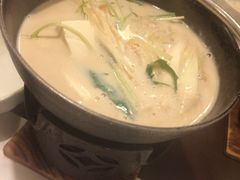 小さな豆乳鍋。お肉はなく、ベーコンもどきでした。