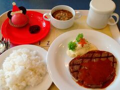 グリルドビーフやハンバーグ、チキンのオーブン焼きなどのメニューがありました。キャラクターダイニングは事前受付が必要です。