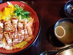 土日もランチ実施でうれしいです。5種の肉丼でとんぺい焼きのつく物もあります。お値段からの期待以上に肉質良いですが味付けは居酒屋ランチだけに濃いめです。