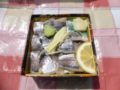 伊豆急修善寺駅の改札そばにお店があります。行きに予約しておけば帰りに受け取れますので、売り切れの心配もなく、帰りの車中でいただけます。桜の葉っぱが敷かれた酢飯はほんのり桜の香りが移り、程よく締めた鯵とよく合います。1つ1700円、修善寺のおすすめ弁当です
