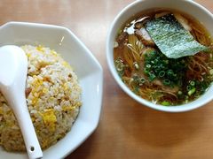 ランチのセットがお得感あります。ラーメンは自家製麺で全粒粉細麺、スープはあっさり醤油、チャーシューは肉感あるしっかり火の通った赤身。チャーハンは、ぱらっぱらの懐かし味です。