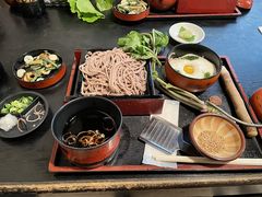 12時ごろでしたがすでに満席でした。お店おすすめのおそばを頂きました。お料理が運ばれてくると従業員さんが食べ方や商品の説明をしてくれました。自分ですったわさびでたべるおそばは格別でした。ごちそうさまでした!