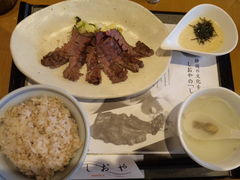 わさび塩で食す静岡牛タンを推しているお店です。牛タンは厚切りやわらかの適度な歯ごたえで好いですよ。テールスープ、とろろも申し分なく牛タンが食したいときに上位で挙がる候補にできます。