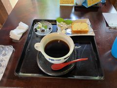 伊豆下田のペリーロードで、疲れたのでお茶でもと思ったのですが、どこも観光地価格で高くて、やめようかと思っていたら、草画房さんを偶然見つけました。いかにも古民家カフェといった感じで、古い柱時計もあり(ちゃんと動いています)、落ち着いてホッとできるお店です。コーヒーと甘夏?のパウンドケーキをいただきました。コーヒーは少しぬるかったですが、まあまあの味でした。パウンドケーキはすごく美味しかったですよ。合わせて1000円、観光地の価格としては、高くもなくのお値段だと思います。小さいですが、お庭もあります。なお、店内で写真撮る際は、お店の方に許可とってください(ほかのお客様の迷惑にならないことが条件だとのことです)。