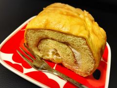 いわゆるシューロールケーキですがコンビニや他のケーキ屋さんの物とは一味違います。30センチはありそうな存在感のあるビジュアル、ずっしりと重いです。刻んだ栗の甘露煮と生クリームがたっぷり入ったロールケーキをしっとりとしたシュー生地が包みこんでいます。パサパサなシュー生地が多い中、こちらのお店のものはしっとりとしていてロールケーキとの一体感が格別です。ケーキ自体は町のケーキ屋さんらしい甘めで素朴な味わい。午前中に行ったので予約なしで買えましたが、売り切れの場合もあるので確実に購入したい場合は予約をお勧めします。