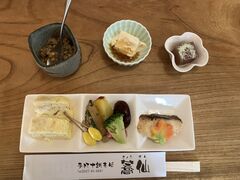 セットのだし巻き卵、さわらの幽庵、蕎麦の実のリゾット、湯葉etc.
