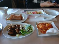 ランチを食べたくて有給を使って平日に行きました。予約して通された席は富士山が見える席だったので有給休暇を取った甲斐がありました。選べるメインはエビチリと酢豚。あとチャーハンと堅焼きそばを注文。写真はエビチリと酢豚です。味は濃くなくて食べやすい味です。デサートも選べるようになっていて夫婦で全部違うものを注文したので色々な物を食べられて満足でした。次回は担々麺を食べに行きたいです。