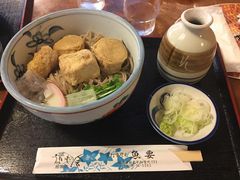 11時に開くのを待って一番に入りました。桜のお茶をいただきながら温かい湯葉そばを注文しました。そばは緩めでしたが湯葉が4つも入っておりおいしかったです。
