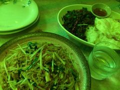 外観はいかにも現地の方がやっているお店で、特に夜は店中グリーンの電気で照らされるので、とても入りづらい笑