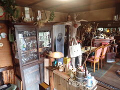お店の中は、レトロな雰囲気で少し薄暗く、不思議な空間です。少し高いところに建っているので緑の景色が美しく広がります。