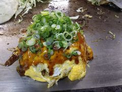 お好み焼きは卵を2個使ってふわふわのオムレツを乗せたような味でした。