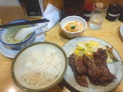 夜の8時頃来店しましたが、”数量限定特切り厚焼き定食”にありつくことが出来、満足!最高の喜びでした。とても美味しかったです。ちなみに、味は、タレを注文しました。やっぱり、炭焼き、焼き立ては美味いですね。弁当とは一味も二味も違いますね。店で食べることお勧めします。字の事く厚切りのタンで、食べ応えがあり美味しかったです。しいて言ううならば、数量限定特切り厚焼き定食はチョットお値段が高いので、山芋とろろのサービスが付くと嬉しいなと、思いました。