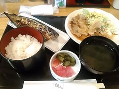 岩沼市の西側、国道4号線沿いにあります。お店は和風の作りで落ち着きます。ランチの値段は700円から1250円と店の落ち着きからすると、お手頃価格です。今回は、しょうが焼きに開きサンマがセットになったAランチ700円(税抜)にしました。食後にドリンクが付きます。大変お得です。