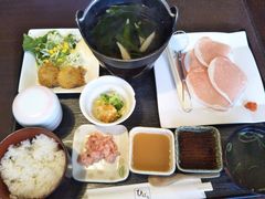 「ひばり」で昼食、なでしこ定食とホルモン炒め定食をいただく。なでしこ定食は豚しゃぶはじめ品数豊富、ホルモン炒めはやわらか、どちらもボリュウムあり。メニュー豊富で盛り良好、店内ひろく客席多い、国道沿いの定食屋。