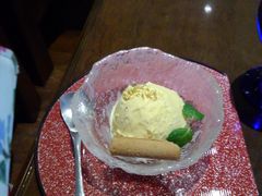 ラウンジでの金粉かけアイスクリーム