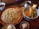 注文したのは盛り蕎麦とミニ天丼、くるみ蕎麦、蕎麦の実のコロッケ