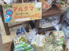 長野県にある『グレンパーク さわんど』さんは、お土産商品や特産品などが販売されています。ゆるキャラのアルクマが可愛らしい『アルクマの信州そば』も。初めて見ました。