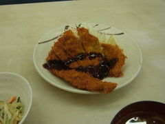 700円の「あさひ定食」を頼んだら、大きなとんかつに肉じゃがに小鉢にみそ汁代わりの小さい沖縄そばまでついて大満足。港から歩いてもいける距離。