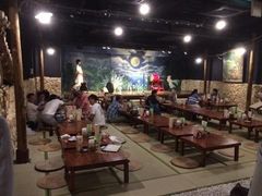 2階にステージがあるので、2階の席で食事になりました。この日は、とても混んでいました。靴を脱いで、最前列の右端に案内されました。