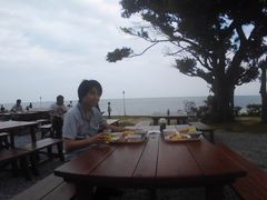 シーサイドレストランの外にテラス席が30〜40程テーブルが有ったので、谷茶ビーチを見ながらの食事。