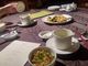海老-温菜炒め〜 スープ〜 ジューシーご飯〜 麻婆豆腐〜 点心〜デザートの コース料理。