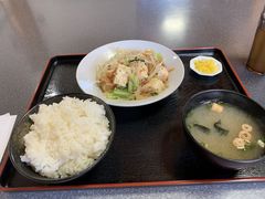 豆腐チャンプルー定食700円。豆腐がたくさん入っていて美味しかったです。味付けも濃すぎず、薄すぎずで満足のお昼でした。