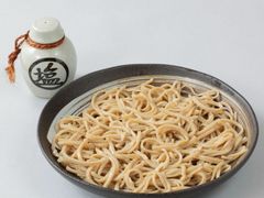 関東鐵道常総線の下妻駅から県道334号線を道なりに西へ、徒歩約17分国道125号線と交わる長塚三差路角に店を構えている《手打 追分》さんになります。時間をかけたかえしが味の秘訣で、挽きたて・打ち立て・ゆでたて「三たてのそば」の香りをひきたててくれます。蕎麦は金砂郷と栃木産に限定し、玄そばを自家製粉しています。麺は、甘皮も一緒に挽いているので少し黒っぽい細麺です。出汁は、本鰹・鯖節・宗田節をブレンドしています。店、1押しの【塩そば】は、もりそばに塩を振っていただくと酒の肴代わりにもなる、さっぱりした味わいの逸品です!