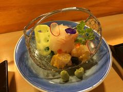 ランチが美味しかったので、夜に行ってみました。お酒にあうように作られているお料理で、やはり見た目がとても美しかったです。お手頃なお値段でこんなお料理を出してくださるのは、とてもありがたいです。お見せの方(ご夫婦?)は、最初は取っつきにくいかな?と思ったのですが、とても優しくて親切な方です。