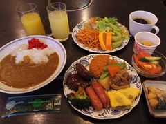 朝食のバイキングです。品数が多く、いろいろ選べて楽しいです。朝カレーもありましたが、なかなか美味しいと思います。