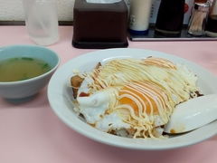 今治のB級グルメ「焼豚玉子飯」を食べにいきました。トッピングにマヨネーズを追加したことによって、より好みの味で美味しくいただけました。(780円)