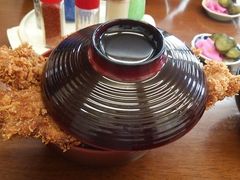 ソースかつ丼で有名なお店です。大きなかつを1枚乗せるのなら1枚丼、2枚なら2枚丼、3枚、4枚・・・と、自分の好きなだけの枚数が注文出来ます。3枚丼でご飯を大盛りにしたら、大食漢でも十分満腹になるでしょう。ラーメンとのセットにも出来ます。店員さん(奥さん?)の応対も丁寧で、とても気分良く食事の出来る食堂です。