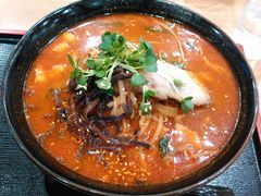 ハイウェイオアシスで大人気のラーメン屋さん。(他にもラーメン屋があって皆流行ってるけど)看板商品は地獄ラーメン。辛口できくらげ?など黒いトッピングが地獄観を表している。チャーシューのほかに棒状の肉が沈んでいるのはなんでかな?辛いけど汗かきながら食べるとさっぱりします。