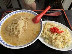 かれこれ30年ぶり位の来店。子供の頃に一度来て以来でした。11時という昼前でしたが、日曜日ということもあり店内はすでに大半が埋まっていました。30年前のこのお店にそこまで混んでいた記憶はないのですが、テレビで放映されたこともあり、その反響は絶大だったのでしょう。お勧めの味噌ラーメンを注文。野菜の甘味がスープに溶け込んで、でもニンニクのパンチも効いて、やはり絶品です。ただ、自信を持って食べ始めたものの、思っていた以上の量に最後はやや苦戦しました。大盛りを頼むには相当の自信が必要ですね。味噌ラーメンで有名なお店ですが、「食堂」なので、ラーメン以外にもチャーハンやカレー、カツ丼等ご飯物も充実。セットメニューもあります。メニュー表に「エベレストチャーハン」なるものがありましたが、どんなものなのやら。食べ終わり11時半ごろ出る際には、待ち客が10人以上でした。お昼時は並び覚悟での来店になると思われます。