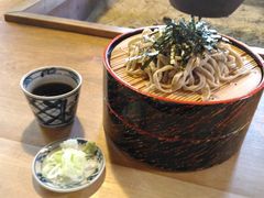 ざるそば(950円)を頂きました。老舗のお蕎麦屋さんは量が少ないイメージがありましたが、こちらは2段で下の段も同じ量が入っています。素人が切ったように(←こちらの店の特徴のようです)太さにばらつきがあり食感が楽しめます。