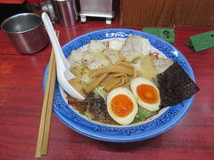 熊本を代表するラーメンの一つで、空港で土産に買ったことはあったのですが、店に行くのは今回が初めてでした。開店少し前に到着し駐車場に入ると先客が数人でした。店内に入るとカウンターとテーブル座卓があり芸能人の色紙や写真が飾られています。ラーメンを食べるとこれぞ熊本ラーメンと言える味で、とんこつスープにニンニクがマッチしています。食券を購入するとき「くろまるラーメン」か「スペシャル」にするか迷いましたが、どっちも昔ながらの良心的な価格です。