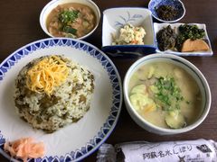 阿蘇の郷土料理たかなめしの元祖のお店です。酸味が少しあるたかなめしで素朴で昔なつかしい味がいただけます。主人はごま油で甘辛く炒めた高菜炒めを混ぜ込んだものが好きなので好みは分かれるかも。私は好きです♪今回もたかなめし定食をいただきました。たかなめしにだご汁、ホルモン煮込みがセットになっているのでボリューム満点です。