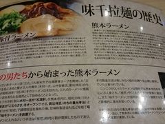 熊本に行くと一度は行きたくなり、また食べました。濃いのですが飽きない味で安定しています。古い歴史があって、メニューに書いてあります。