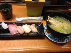 ちょうどお昼時だってので、お店の前にも人だかり。満席で無理かと思って覗くと、空席ありとの表示。幸いに1人だってのですぐに入れました。メニューを眺めていたら、ランチがあり、これがスゴイ!10貫とお味噌汁付きで1000円。ネタがしっかり大きくて食べ応えあります。もっと他のネタも食べたかったけどお腹イッパイで無理でした。本当に美味しかったです。