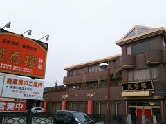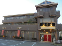 以前から予約していた新館の中華料理専門店。お店の前には20台くらいは停められる無料駐車場があります。店内の一階は