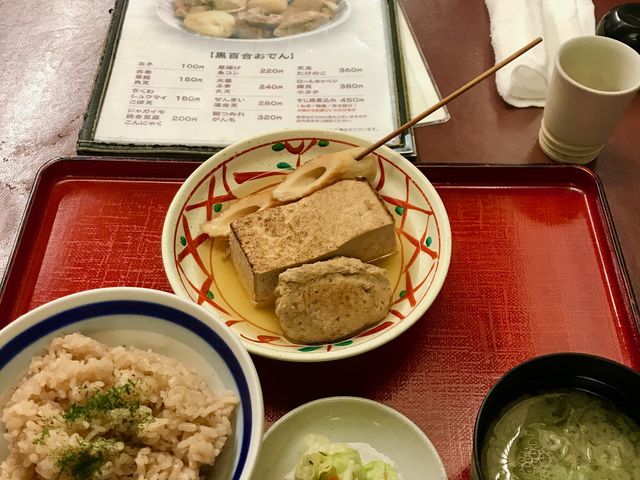 おでん定食のおでん。 お豆腐が絶品です。