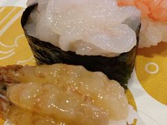 地元の方のお勧めで訪問〜。皿の色で値段が違うナショナルブランドでは絶えたシステム。ガスエビ・のどぐろ・ホタルイカ。白エビと日本海の幸をお手頃に堪能。平日でも12時過ぎには入店町列ができていました