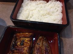 ご飯とうなぎが別々の2段重ね、ご飯にのせて食べました。