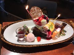 旦那の誕生日をお祝いする為に、ブレカフェ に行きたいと言ってたので、前もって電話予約をしてから、伺いました。予約時、旦那の誕生日だということは一切伝えてません。当日、美味しいご飯に舌鼓を打ちながら、前回来たのがいつだったかなー?という話をしてました。二人とも、前回いつ来たか覚えてませんでした。すると、デザートの時に、豪華でおしゃれなデザートの盛り合わせが、、、!席の間違えだと思い、すぐさま、「違いますよ」とお伝えしたのですが、デザートプレートには旦那の名前が、、、!!旦那の年齢まで合っていました!夫婦で混乱してると、「去年もお誕生日のお祝いに来て下さって、覚えていました」とのこと!!お店側の気遣いとか、すごく感動して、私が泣きそうになってしまいました笑 夫婦二人でとっても嬉しく、思い出に残る1日になりました!ありがとうございました(^^)