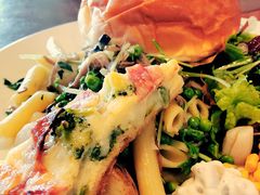 ランチをいただきました。プレートランチにハンバーグランチどちらにもパンがついてくるのですが、そのパンがとても美味しいです。バターの溶け具合が絶妙でふわふわです。さらに、レジ横に二百円で売ってるので、思わず買いました。平日でもお客さん多くて、予約した方がいいですね。