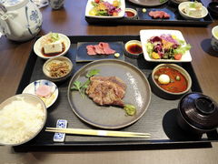 ステーキ重御膳と、ロースステーキ御膳を2人でシェアして晩御飯に食べました。美味しかったけど高かった。でも旅行では現地のものを食べるのは記憶に残りますね。