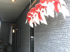 奥まった所に玄関があります。金魚の飾りが可愛かったです。