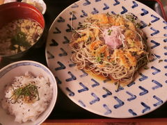限定5色の「鴨ざるセット@1650円」が気になったが、「オススメランチ@1700円」をチョイス。そばがき、海老おろしのそば、山椒ごはん、お椀、蕎麦アイスが付いてくる。