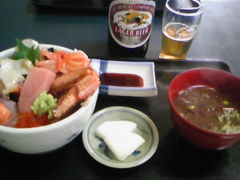 大きなどんぶりにいろんな種類の海鮮がいっぱい乗っていました。