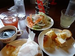 5種類のメインメニューから選ぶことができ、野菜のサラダやトースト、パンなど数種類のサイドメニューをバイキング方式で選べてリッチな気分になれます。スパゲティーも食べやすい味つけです