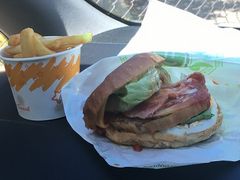 出てきたハンバーガーは、モンスターと冠されている割には、意外と普通の大きさで、案外さらりと食べることができましたが、カリカリにローストされたパン(バンズって言うんでしたっけ?)がいい食感で、ハンバーグもベーコンもいいお味でした。
